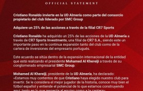 2月26日,西乙球队阿尔梅里亚队在官方宣...